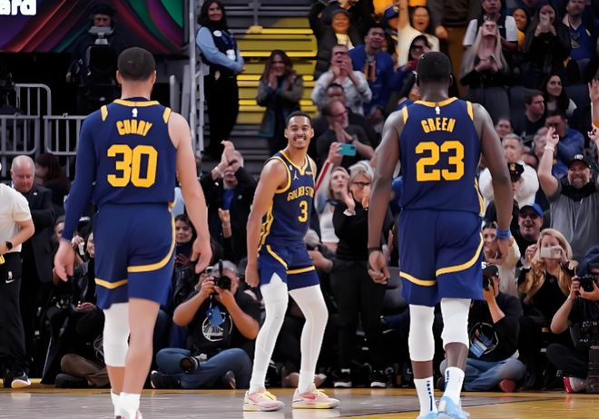 再往后的2023-24赛季,普尔离队,虽然保罗和波杰姆斯基入队后迅速融入球队,库明加也在同年大爆发,打出场均16分的出色表现;但克莱、威金斯等人状态下滑,直接让勇士吃下近几年的最惨结局,附加赛首战就被淘汰出局。