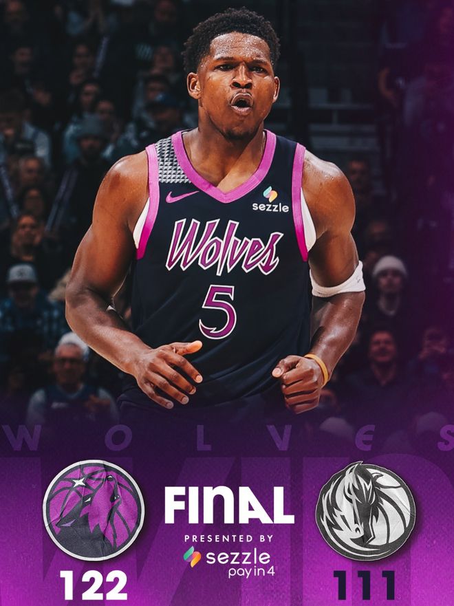 爱德华兹疯狂出手30次命中16球,三分13中5,拿到40分6篮板1助攻1抢断,他帮助森林狼大胜独行侠,此役后森林狼胜率61.8%仅比湖人少0.04%的胜率排在西部第六。