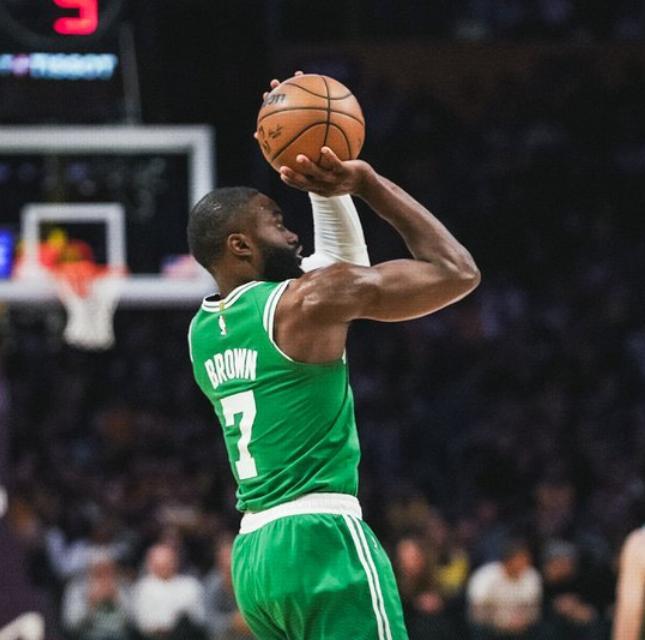凯尔特人能够从客场全身而退,杰伦布朗毫无疑问是最大功臣,尽管全场受到紫金军团的重点照顾,导致杰伦布朗只有28投10中的效率,但是他贡献了32分、8个篮板、7次助攻和3次抢断的全面个人数据。