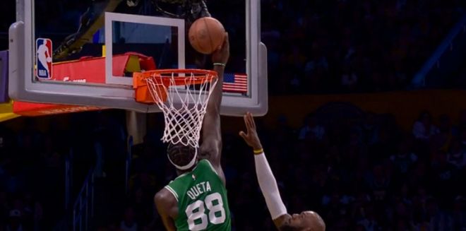 科塔顺下接球起飞,迎着东契奇单臂战斧暴扣,予以回应。布朗失去平衡下撞倒东契奇,后者经过短暂调整后重新站起来,裁判也无任何表示。詹姆斯上篮被克塔封盖,随即向裁判投诉干扰球,裁判直接无视。杰伦·布朗突破上篮,詹姆斯左手送上钉板大帽,振臂高呼。普理查德超远三分压哨命中,半场战罢,凯尔特人60-50领先湖人10分。