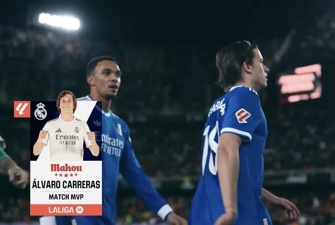 西甲第23轮,皇家马德里客场2-0击败瓦伦西亚,此役打入一球的皇马后卫卡雷拉斯当选西甲官方全场最佳球员。
