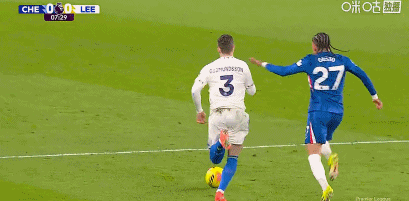 第13分钟,格鲁耶夫放倒帕尔默,裁判示意犯规