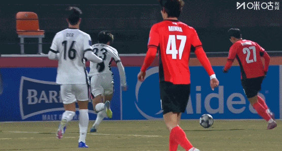 易边再战,江原打出高效反击,牟在现接队友右路回敲,一脚低射滑门而过。