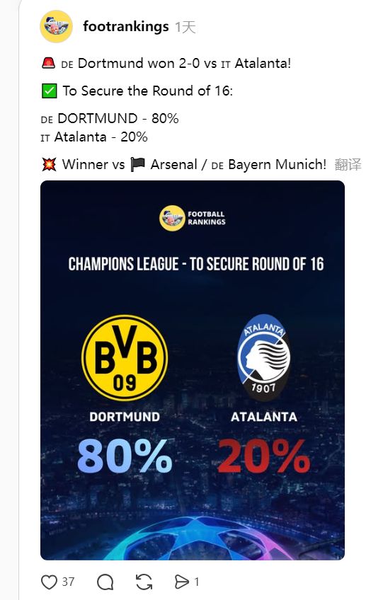 相比于尤文图斯、国际米兰的破罐破摔式摆烂,亚特兰大客场0-2输给多特蒙德显得毫无波澜。对于次回合的展望,虽然多特蒙德并非以防守稳固著称,但亚特兰大也早已不是当年加斯佩里尼治下那支进球如砍瓜切菜的球队。该队的欧冠历史全部集中在2019-20赛季之后,总主场成绩是6胜7平7负,得失球30-29,完全看不出来有逆转的机会。