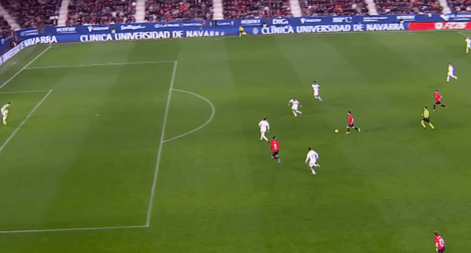 反观奥萨苏纳却踢的积极主动,并且长时间将皇马压制在本方禁区防守。两个边路的不断传中,给布季米尔制造出了大量的机会,如果不是库尔图瓦足够神勇,奥萨苏纳至少已经打进了两球。而在防守端对维尼修斯和姆巴佩的盯防也非常有章法,基本没有给对手太多的机会。